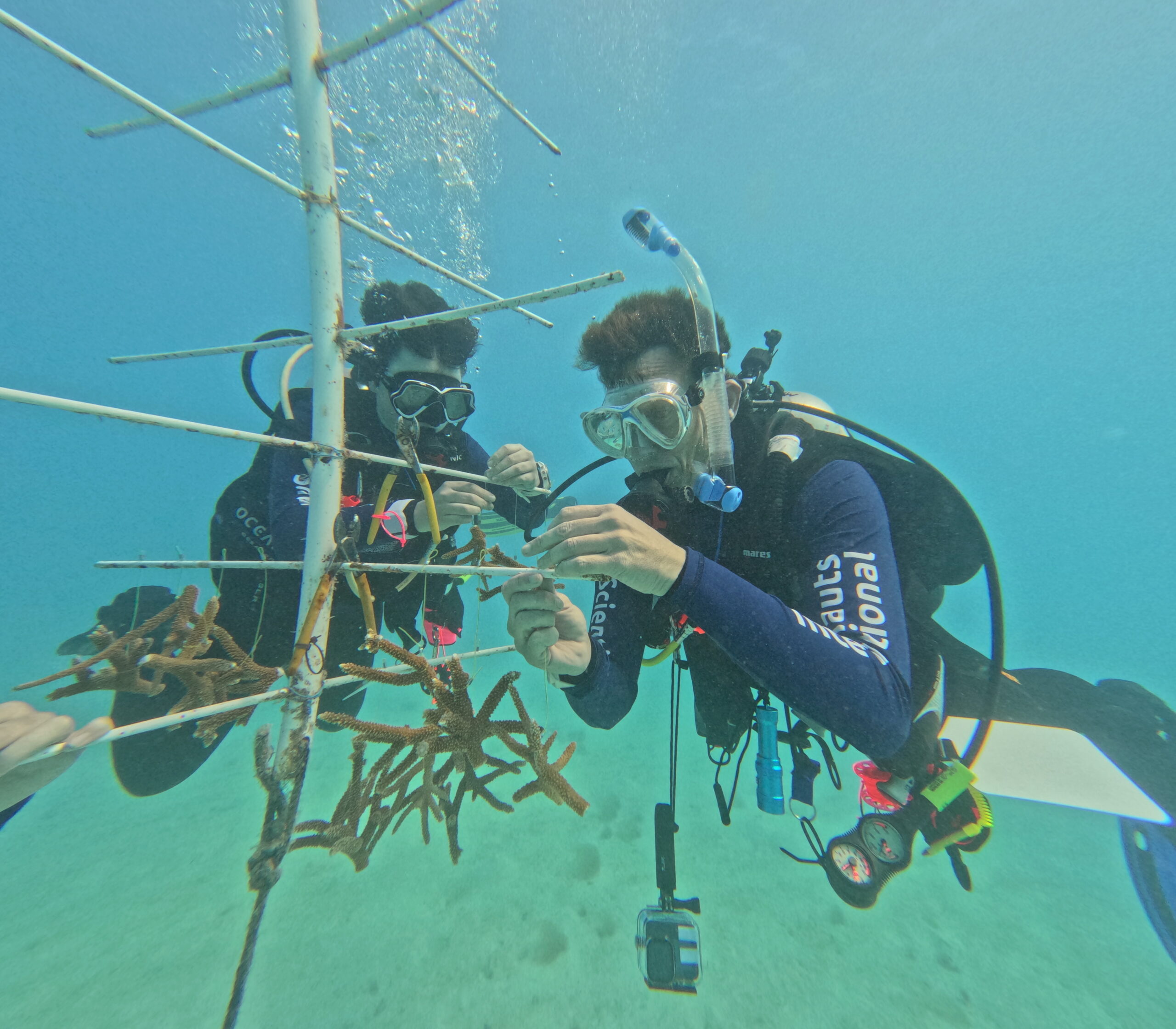 Later, the Mote team takes those grown fragments through the outplanting process, where they’re transplanted back onto damaged reefs in a controlled, calculated way. We don’t do the outplanting ourselves, but knowing that the corals we fragged and hung will eventually end up reviving a real reef is what made every dive feel purposeful.